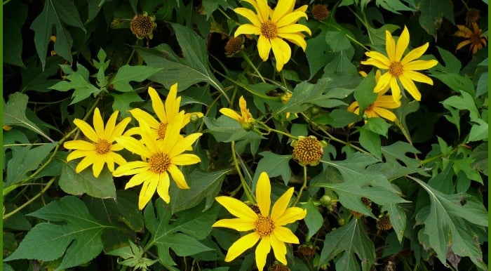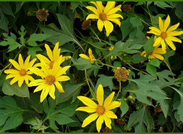(Tithonia diversifolia): Es una planta arbustiva, la cantidad de proteína en sus hojas va desde 20 a 30 %. Las hojas del botón de oro tienen más fósforo y potasio que la mayoría de leguminosas.